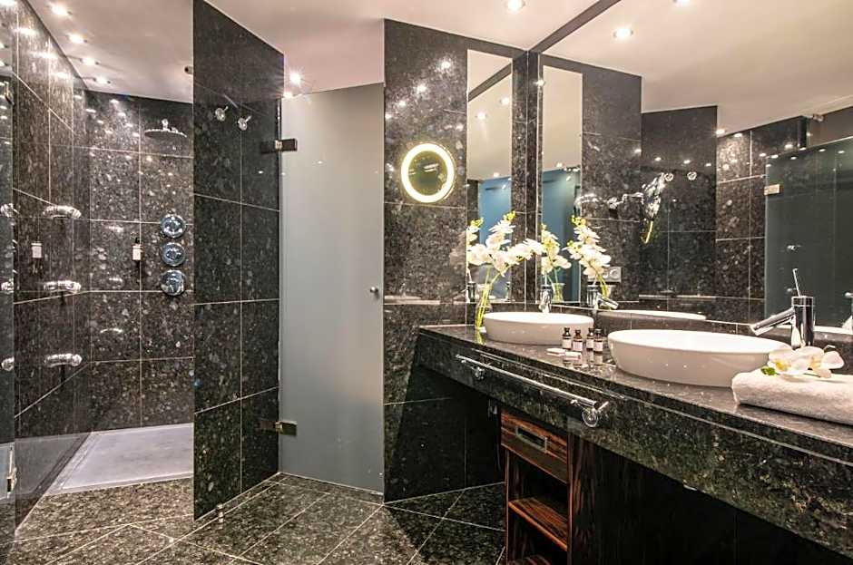 The hot tub and spa bath are the special features of this double room. The spacious double room features air conditioning, a mini-bar, as well as a private bathroom boasting a walk-in shower and a hairdryer.